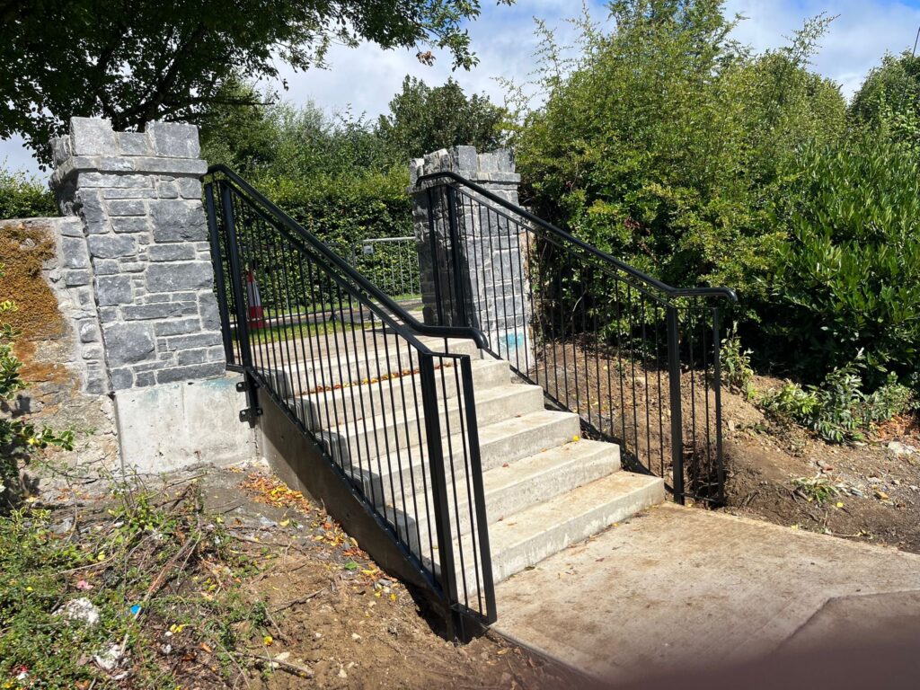 As required, hand grips are painted RAL 1021 yellow to identify grips to slide gate open.
